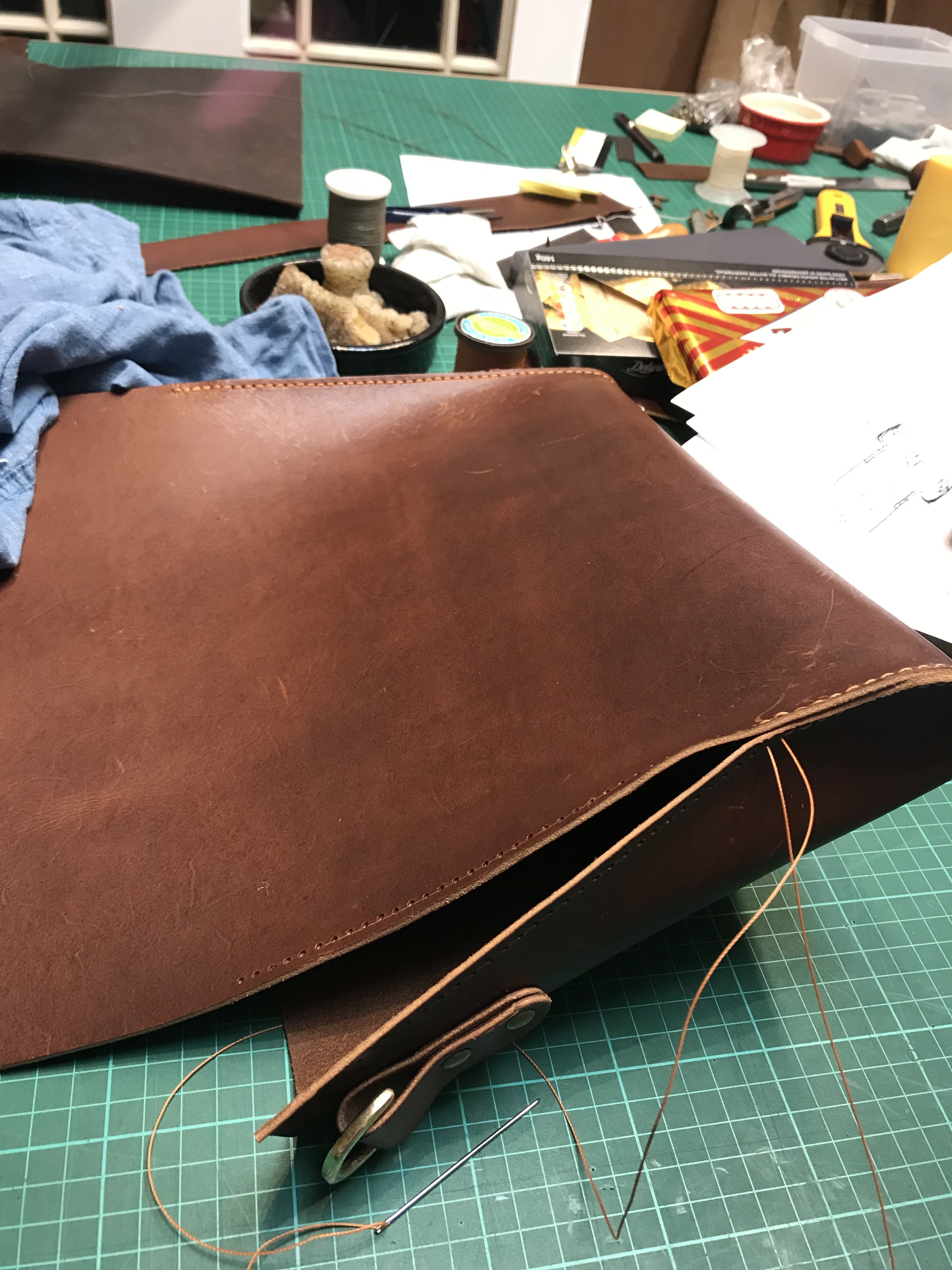 A messenger bag hand stitched and finished in a day. Wow we were so impressed with our day here at http://www.leathercraftworkshopdays.co.uk