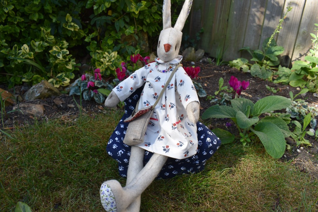 A very kind friend gave me the book by Sarah Peel ” Making Luna Lapin” as she knows I have a liking for making rabbits! My others were made from a ’40s pattern by Edith Moody. Now I am all up to date!